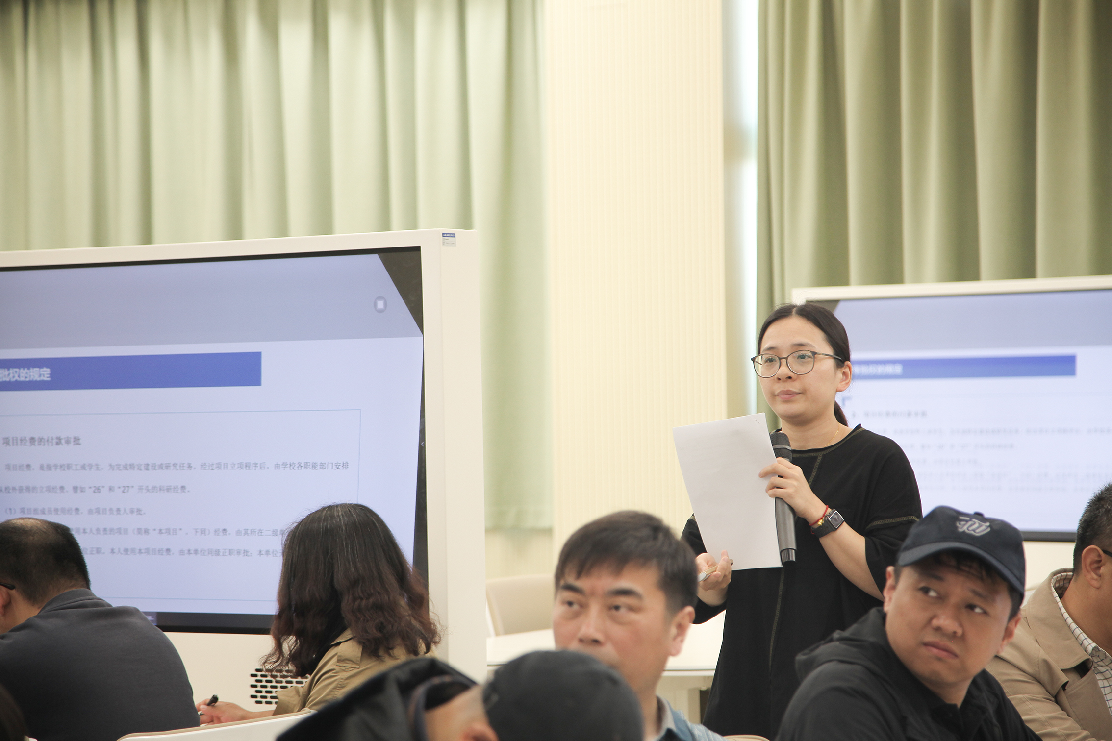 王清成首先欢迎陆炜老师,对财务处老师到会指导工作表示感谢。接着陆炜讲解了财务报销规定,详细解读各项经费科目的规范报销流程,工程创新学院教师们认真听取讲解,不时做笔记。陆炜老师针对教职工提出的问题进行现场答疑。
