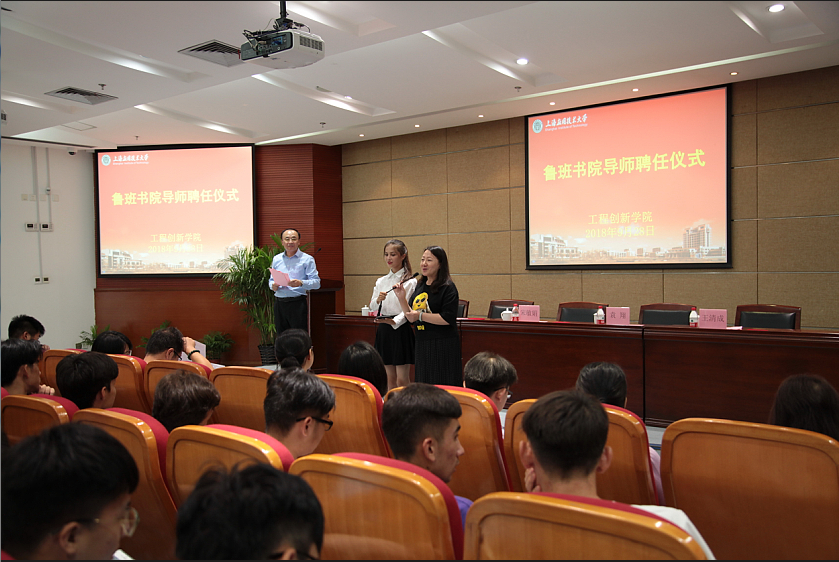为了贯彻落实全国思想政治工作会议精神,践行社会主义核心价值观,推进全员育人、全方位育人、全过程育人,学校依托工程创新学院于2017年9月成立了“鲁班书院”。2018年9月28日下午1点,鲁班书院兼职导师聘任仪式在图书馆B101隆重举行。校党委副书记宋敏娟、工程创新学院院长、教务处处长王宇红、党委学生工作部部长、学生处处长袁翔、工程创新学院常务副院长徐兵、工程创新学院党总支书记王清成出席仪式。工程创新学院常务副院长徐兵主持聘任仪式,鲁班书院导师及书院各专业两百多名学生参加了聘任仪式。