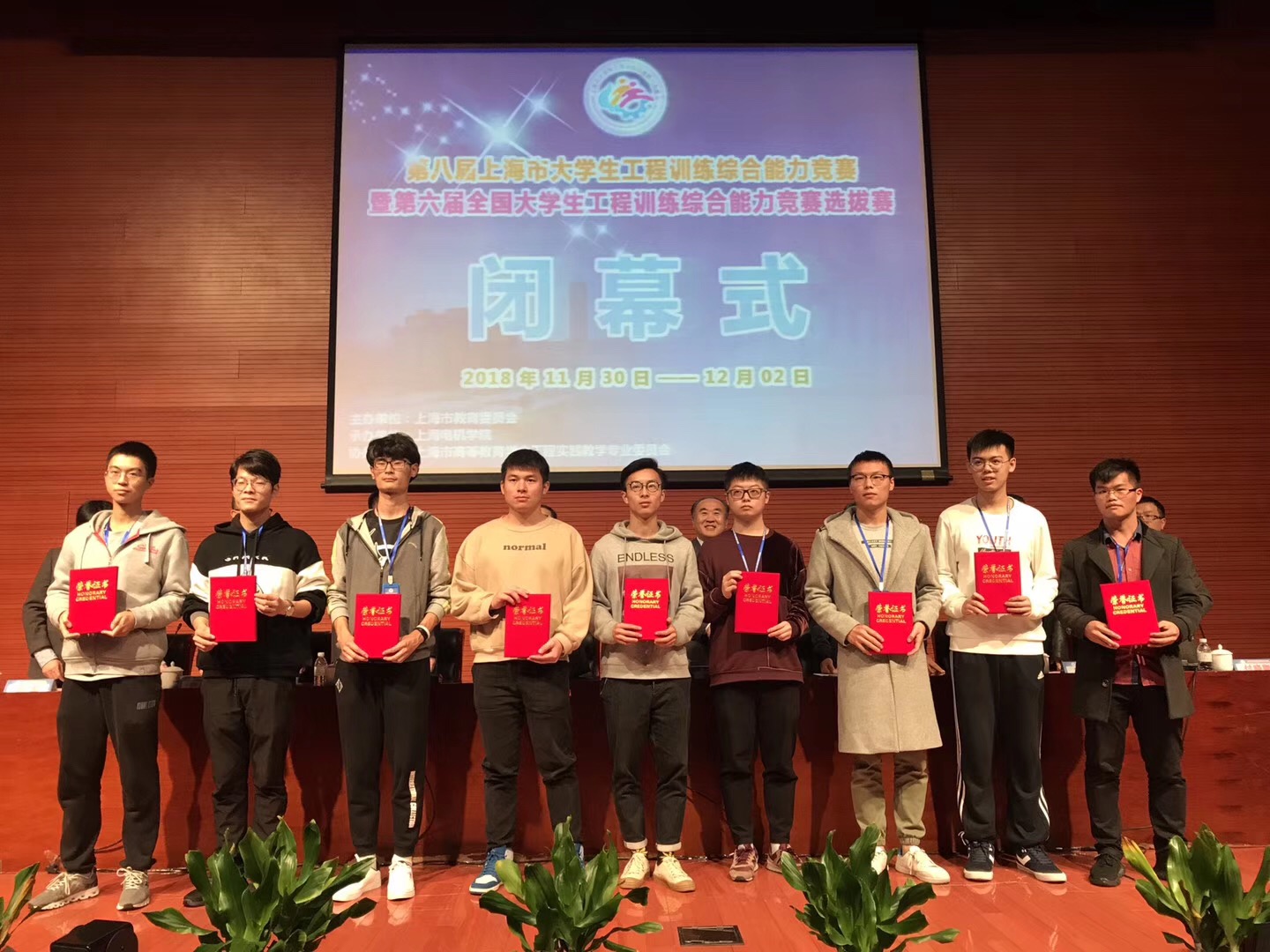 2018年11月30日至12月2日我校组织参加了第八届上海市大学生工程训练综合能力竞赛,共获得竞赛组一个特等奖、一个一等奖、四个二等奖、一个三等奖的历史最好成绩。本次大赛由上海市教委主办,来自上海市16所工科院校的84支队伍参赛。参赛同学于赛前进行了高强度训练模拟、反复试验以及查阅大量技术资料。大赛期间,我校同学参与竞赛:“重力势能驱动的具有方向自控无碳小车”、“S”型赛道小车行走竞赛和“8”字型赛道小车行走竞赛。经过激烈的竞赛,我校3D打印无碳小车竞赛团队荣获特等奖1项。