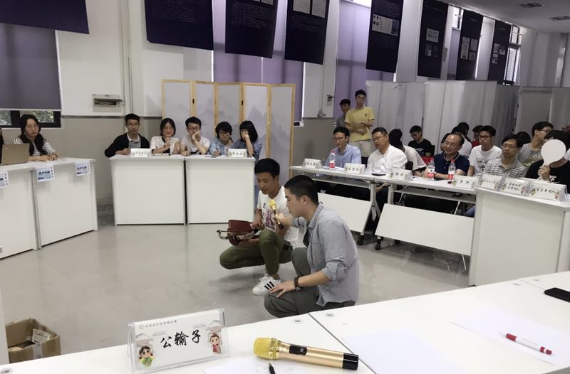 经过赛前案例的选择和深入研究,在辩论赛的现场同学们都通过模具或者演示PPT将自己所选取古代案例清晰地呈现在评委和观众的眼前。其中有一位同学选择的诸葛连弩更是惊艳全场,诸葛连弩强大的冲击力震撼到了在场的每一位老师和学生。从巧夺天工的浑天仪到历史悠久的越王勾践剑,从“最早的计程车”——记里鼓车到社会生产中的丝绸制作等等,无一不给我们留下了深刻的印象。