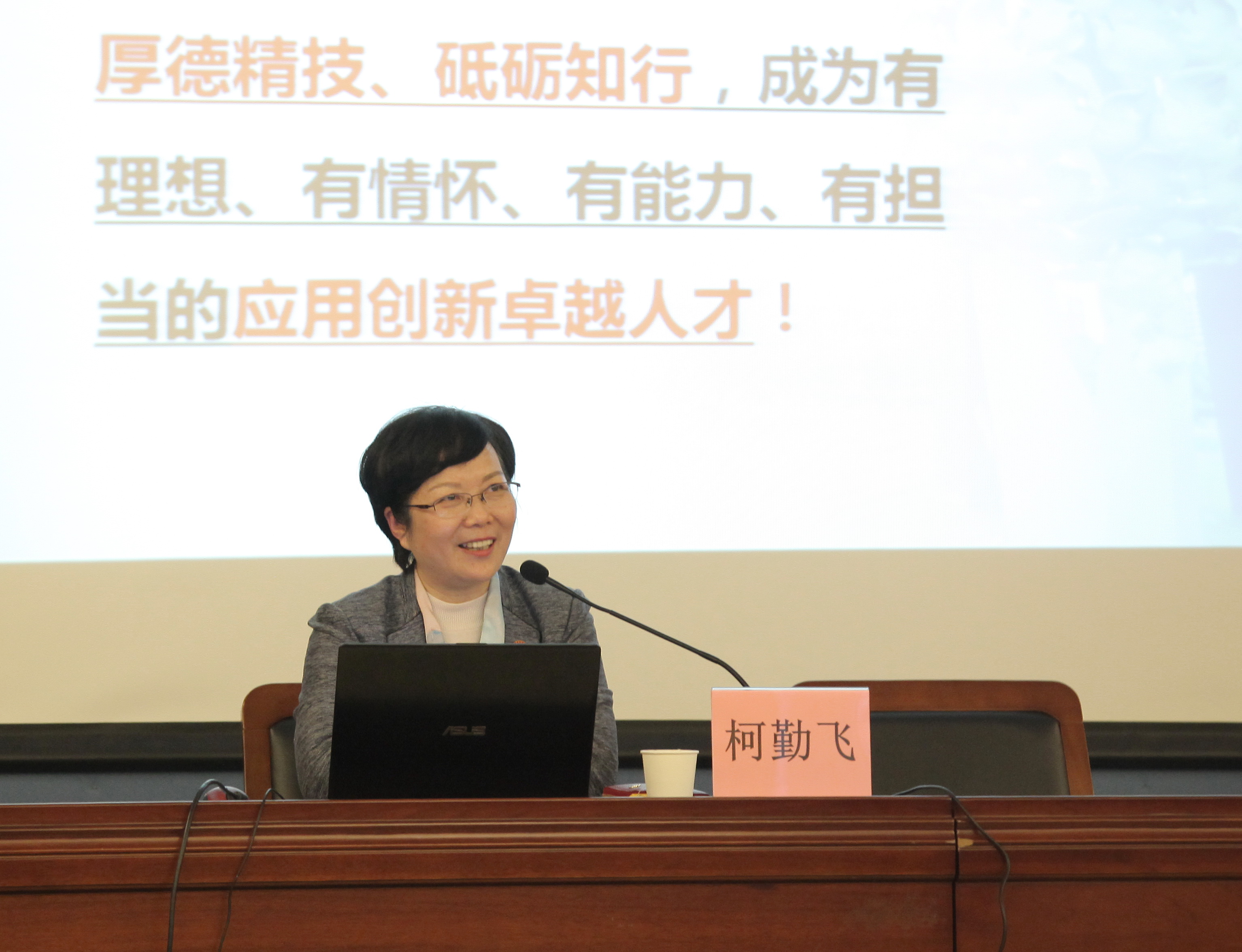 柯勤飞校长以工程创新学院2020级新生特聘导师的身份上了题为《激发内生动力 提升拥抱未来的能力》的创新第一课。 柯校长向各位新生介绍了学校的办学理念及学校近几年取得的成绩,对在座新生详细解读了卓越人才九大核心能力并对全体新生提出努力发展九大核心能力的要求。第一是主动学习与欣赏的能力;第二是自主学习能力;第三创新精神与审辨式思维能力;第四是创造性解决问题能力;第五是交流沟通能力;第六是团队合作能力;第七是具有国际视野;第八是具有信息素养;第九是应用技术能力与职业素养。柯勤飞希望同学们认真理解领悟九大核心能力,在大学四年里努力发展自己,明德、明学、明事,厚德精技、砥砺知行,成为有理想、有情怀、有能力、有担当的应用创新卓越人才。