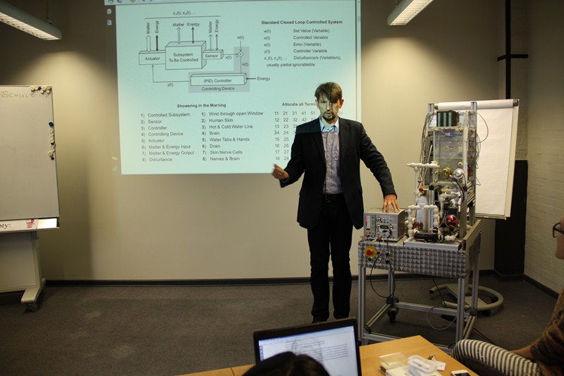 System Approach课程为本次游学SMSCP(Siemens Machatronic System Certification Program 西门子工业系统资质认证)的第二部分重要内容。Piet老师以生活中及其常见的洗澡调节水温的实例引入了闭环控制系统各个部分的组成与运作方式,并以一个迷你的工业水箱水位控制系统增强了感性认识。
