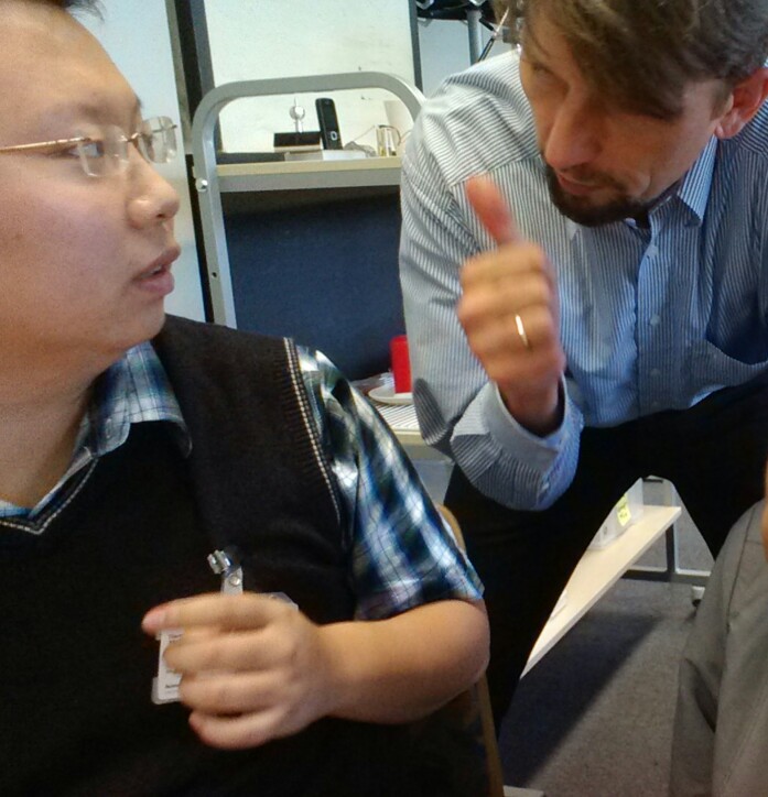 在简单的介绍了如何通过NI的系统提供电源,与模拟量的测量与计算后便布置了一个工程,如何在不改变电路组成的情况下使该电路的负载部分恒流1mA。这与国内的的教育方式反差较大,而学生们尽其所能将理论应用于实际问题,经过分组的头脑风暴后大家纷纷以各种方式解决了这个问题,金轶伦同学在没有PID控制模块的情况下完成了PI控制实现无余差控制,这种解决方法超出了这位德国老师的意料,咱们的学生和上海应用技术学院的教学质量受到了德国老师们的刮目相看和一致好评。