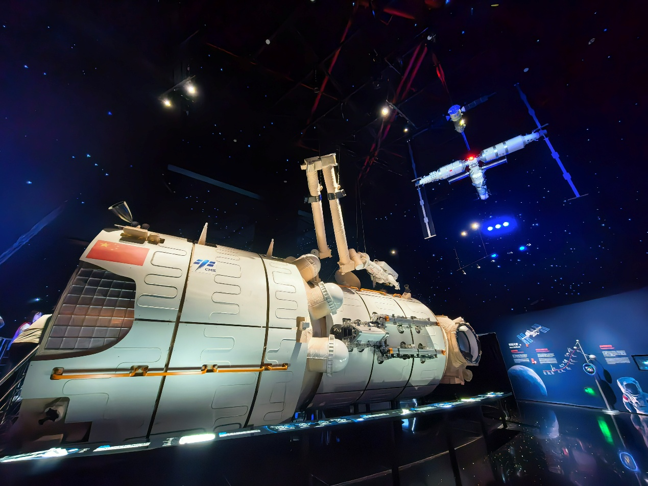 步入“家园”展厅,动态星空投影生动演绎地球46亿年沧桑巨变,从熔岩沸腾、天体碰撞到生命更迭,夜半球的城市灯火宛如璀璨星河,引得大家纷纷驻足赞叹。在太阳系展区,形态各异的行星模型与珍贵陨石标本,让老师们直观领略星系壮美。“宇宙”展厅内,星际穿越长廊以生命、时空等维度为脉络,揭开宇宙运行的神秘面纱。“征程”展厅中,模拟中国空间站天和核心舱的逼真场景,将我国航天事业的辉煌成就一一展现,沉浸式体验更是点燃了老师们的民族自豪感。