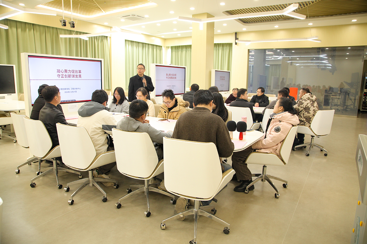 2024年12月27日中12:45,工程创新学院召开全体教职工大会,工程创新学院、工程训练中心全体教职工参加会议。会议由工程创新学院分工会主席崔鹏主持,工程创新学院直属党支部书记王清成在会上做2024年度学院行政工作报告和2024年度学院财务工作报告,学院纪检委员宋伟杰老师做财经民主监督报告。学院全体教职工审议通过了行政工作报告、财务工作报告和财经民主监督报告,并对学院领导班子和学院领导进行了民主评议。