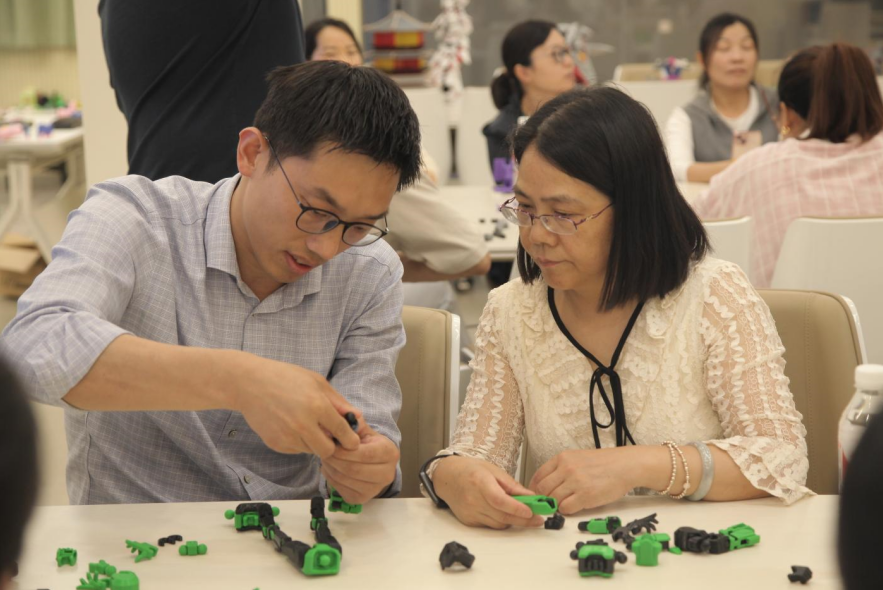本次活动围绕着3D打印技术展开。活动伊始,首先由高磊老师简要介绍3D打印技术的原理、发展及应用领域,帮助参与教师了解活动的背景及意义。接着老师们根据提前准备的3D打印零件,在几位指导老师的指导下进行实地自由拼装;活动还安排了一些趣味小游戏,游戏的道具、奖品都是通过几位指导老师实际操作、设计建模3D打印出来的;最后,在老师们的强烈要求下,参观了工训实训室,具体了解3D打印的过程及原理。参与本次活动的老师们纷纷表示这次活动受益匪浅,切实感受到了3D打印技术的魅力,同时也增加了他们的兴趣。