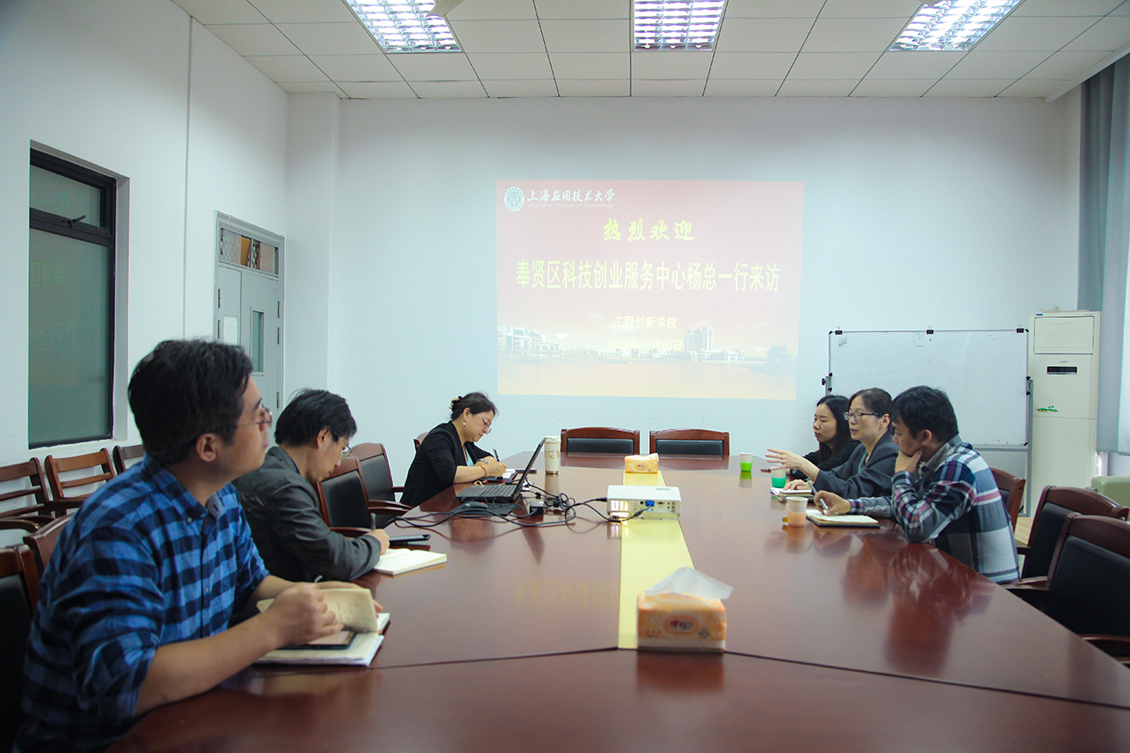 2023年10月10日,奉贤区科技创业服务中心杨总等一行三人到访工程创新学院。上海应用技术大学工程创新学院常务副院长章冬云和三创中心部分教师参加了交流会。