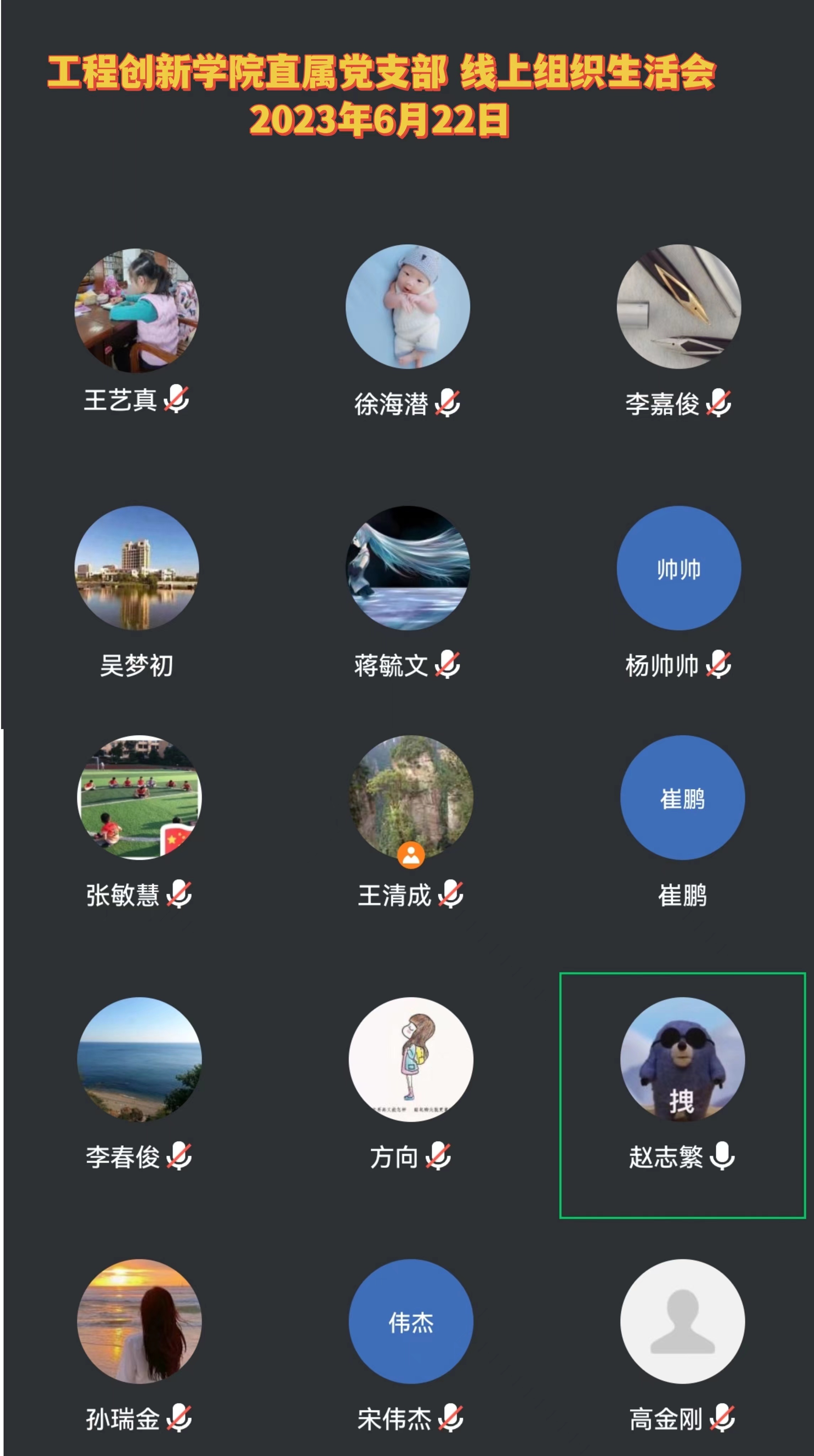 2023年6月22日晚,工程创新学院直属党支部召开线上组织生活会,学习贯彻习近平新时代中国特色社会主义思想主题教育,学习的题目是“务必谦虚谨慎 艰苦奋斗”。直属党支部书记王清成主持,工创工训全体教师党员参加。王清成在组织生活会上特别强调暑期坚持线上学习的重要性,提醒教师党员充分利用学习强国等平台,坚持每天完成理论学习,充分领悟主题教育的内涵。教师党员赵志繁在会上领学了“务必谦虚谨慎 艰苦奋斗”。谦虚谨慎、艰苦奋斗是老一辈革命家和共产党人留下来的优良传统;保持谦虚谨慎、艰苦奋斗的优良传统,是中国共产党永葆党的先进性和纯洁性的法宝。作为党员教师,更应该保持谦虚谨慎、艰苦奋斗,戒骄戒躁,不断学习,不断进步,保持先进性,把党的优良传统长长久久传承下去,把党和人民的教育事业长长久久推进下去。
