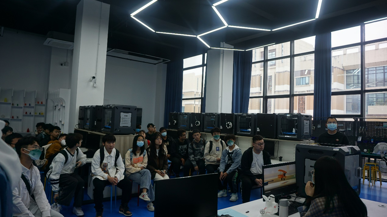 工程创新学院首先安排了孙瑞金老师和杨帅帅老师老师为同学们传授了数字创新智造的新奇知识,打开了一道通往异世界的大门,其中3D打印的发展历程,突飞猛进,大家都心神往之。在本次活动中,老师经过精心准备,给在场的每位学生上了精彩而有意义的一课。
