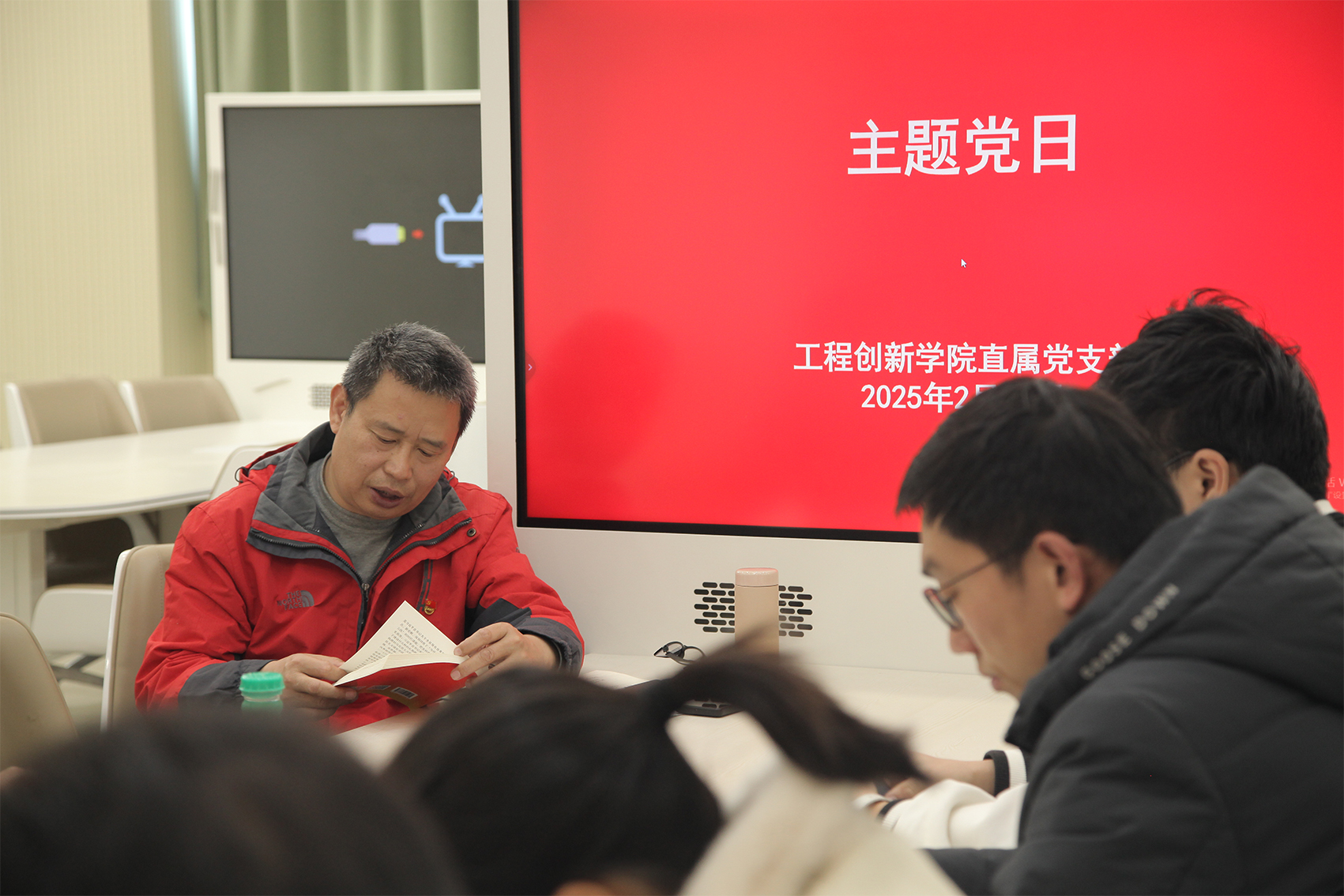 2025年2月28日下午,工程创新学院直属党支部开展主题党日活动,共同学习《党的二十届三中全会< 决定>学习辅导百问》“深化党的建设制度改革”,工程创新学院直属党支部王清成主持并领学,工创工训全体教师党员参加了本次主题党日活动。