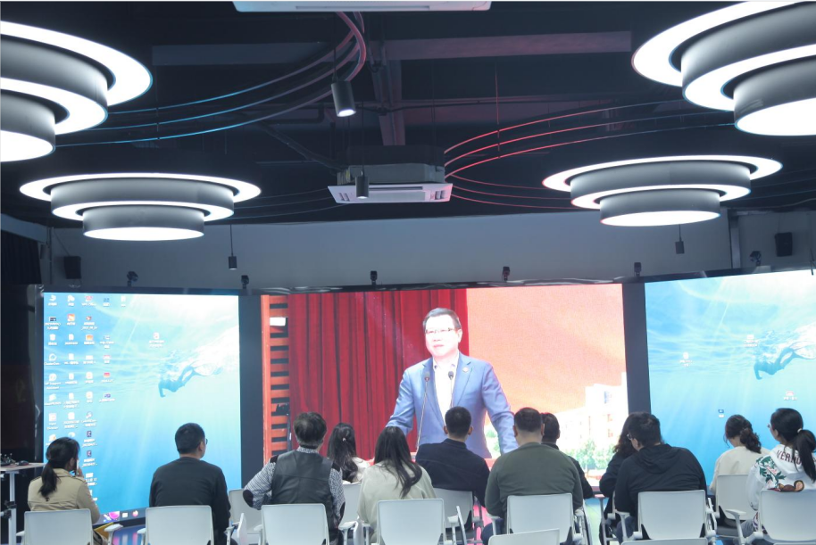 工程创新学院直属党支部教师党员们认真聆听党课。直属党支部书记王清成、教师党员代表徐海潜在学校奉贤校区大学生活动中心现场听党课,支部其他十三位教师党员均参加学院直属党支部组织的集中学习观看。