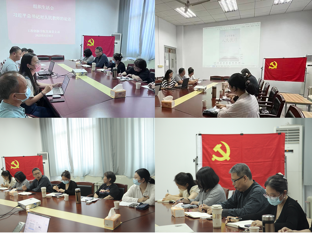 2023年6月9日,工程创新学院直属党支部以组织生活会、主题党日、二级中心组学习的形式继续扎实推进学习贯彻习近平新时代中国特色社会主义思想主题教育工作。学校主题教育巡回指导组孙小玲书记、王玺老师参加,工创直属党支部书记王清成主持,工程创新学院、工程训练中心全体教师党员参加。
