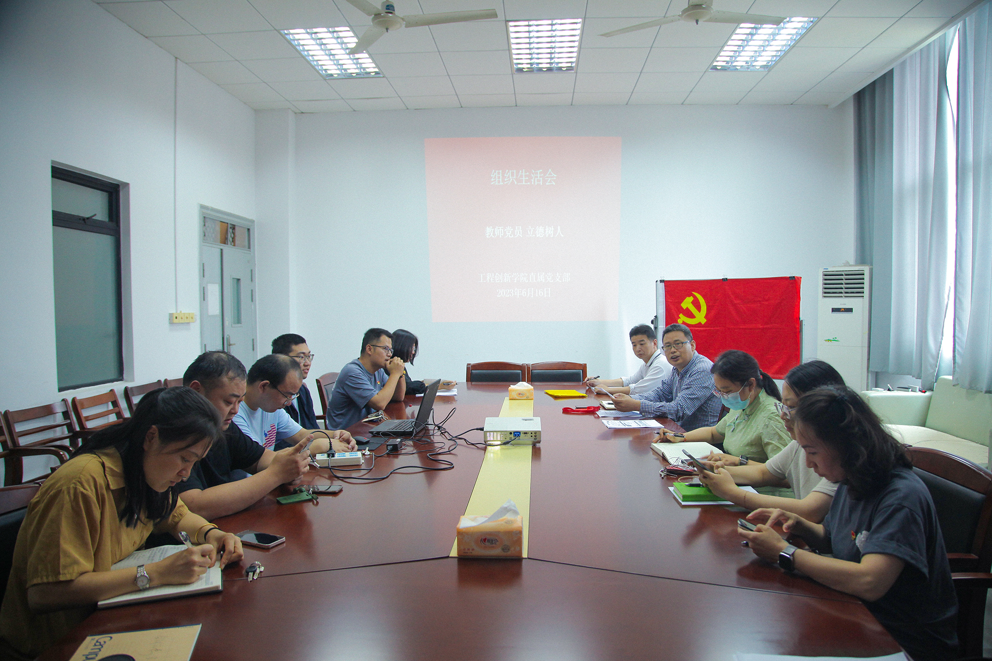 2023年6月16日中午12:15,工程创新学院直属党支部召开组织生活会,会议的主题是学习贯彻习近平新时代中国特色社会主义思想主题教育,题目是“教师党员 立德树人”。主题教育学习以教师党员领学的形式进行,工程创新学院直属党支部书记王清成、工程创新学院直属党支部副书记、常务副院长章冬云及工程创新学院、工程训练中心所有教师党员参加组织生活会,王清成主持了会议。会上,王清成再次传达暑期主题教育学习工作安排,通报党务工作自查情况,对学院暑期各项党务工作进行了具体安排部署。