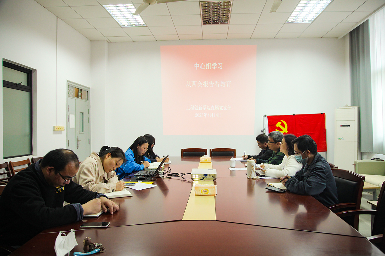 2023年4月14日下午,工程创新学院直属党支部组织二级中心组学习会,学习的内容是《从两会报告看教育》。工程创新学院直属党支部书记王清成主持,工程创新学院直属党支部副书记、常务副院长章冬云领学。