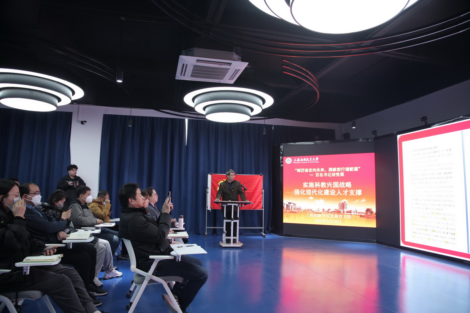 2023年2月10日下午1点,工程创新学院直属党支部组织落实“踔厉奋发向未来,勇毅前行谱新篇“百名书记讲党课——工程创新学院直属党支部第一次党课,由王清成主讲,工创工训全体教职工党员参加。党课的主题是《实施科教兴国战略强化现代化建设人才支撑》,具体分两个篇章,第一篇章学习党的十八大、十九大、二十大关于教育的解读;第二篇章学习2012年以来习近平总书记关于教育的论述。通过本次党课学习,教职工党员深刻领悟“两个确立”的决定性意义,增强“四个意识”、坚定“四个自信”、做到“两个维护”,更加坚定立足本职工作,率先垂范,踔厉奋发,为学校和学院的高质量发展贡献自己的力量。
