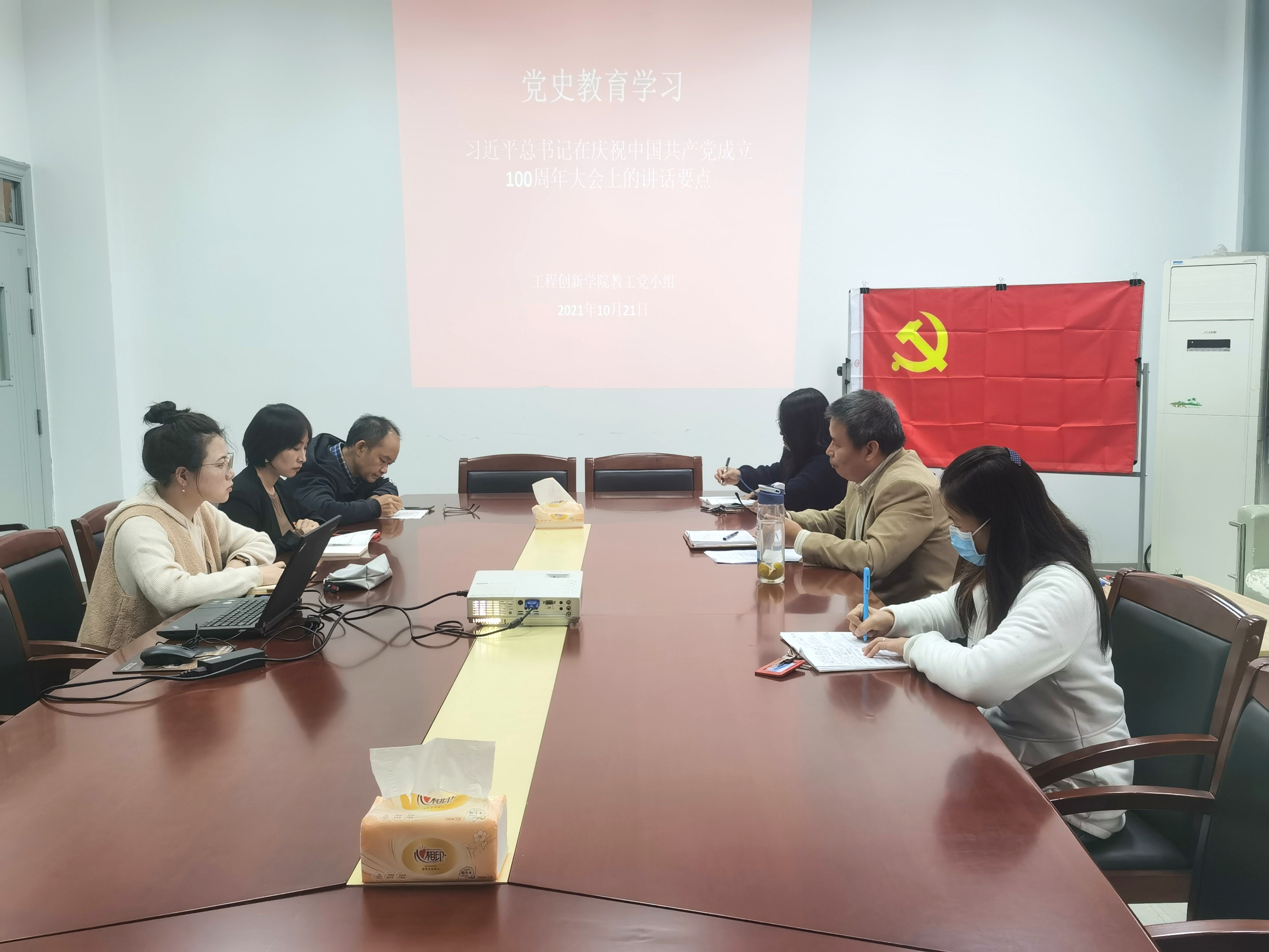 10月21日下午,工程创新学院教工党小组进行了党史学习教育专题学习活动,学习的内容是习近平总书记在庆祝中国共产党成立100周年大会上的讲话要点。