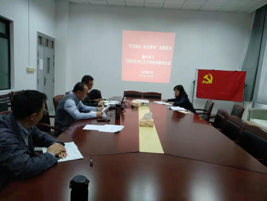 11月13日下午,工程创新学院召开“不忘初心 牢记使命”主题教育专题班子成员集中学习会,学习“习近平总书记关于科技创新的论述”的主题,会议由王清成书记主持,领导班子成员参加了会议。