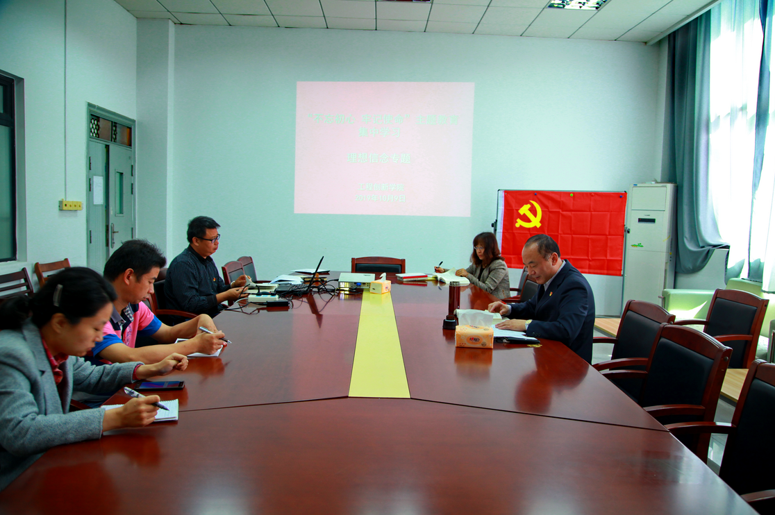 10月9日上午,工程创新学院召开“不忘初心 牢记使命”主题教育专题集中学习会,学习理想信念教育专题,会议由王清成书记主持,领导班子成员、支部书记参加了此次会议。