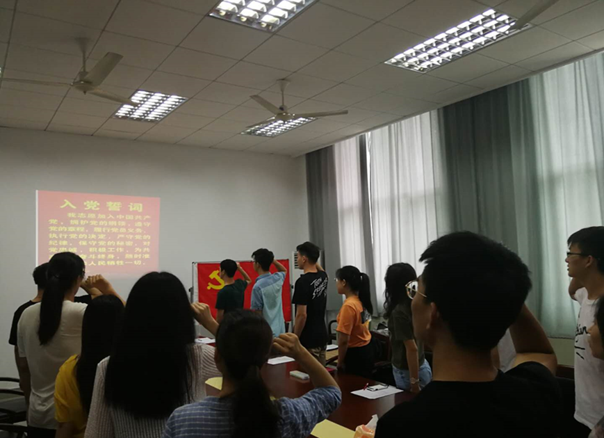重温铮铮誓言,不忘入党初心。6月中旬,学院总支结合毕业生党员离校教育的主题,组织新党员集体宣誓、老党员重温入党誓词活动。“我志愿加入中国共产党,拥护党的纲领,遵守党的章程,履行党员义务……”一阵阵庄严的宣誓声从工训一馆306传出,面向鲜红的党旗,全体党员首先向党旗致敬,然后在总支书记王老师的带领下,庄严地宣读了入党誓词,通过重温入党誓词,全体师生党员再次感受面对鲜红党旗郑重承诺的庄严和神圣,增强了党员荣誉感、责任感和使命感。特别是毕业生党员,纷纷表示:离开校园后,依然自觉用党员标准严格要求自己,继续发挥共产党员的先锋模范作用,以实际行动实践自己对党的郑重誓言,永葆忠于党、忠于国家、忠于人民、忠于事业的党员本色。