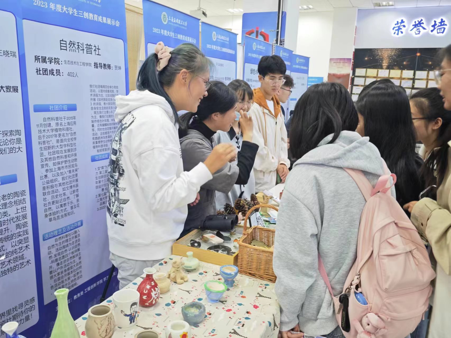 我校大创项目紧跟国家发展动向,不仅凝聚于科技创新的前沿领域,还涉及农业复兴、文化创意等各行各业,各类大创项目展示了同学们无穷的创造力和想象力。今年参展的29个学科型社团根据自身特点,通过精心准备的宣传展板和创意展品,向参展学生展现了各自社团的独特魅力。
