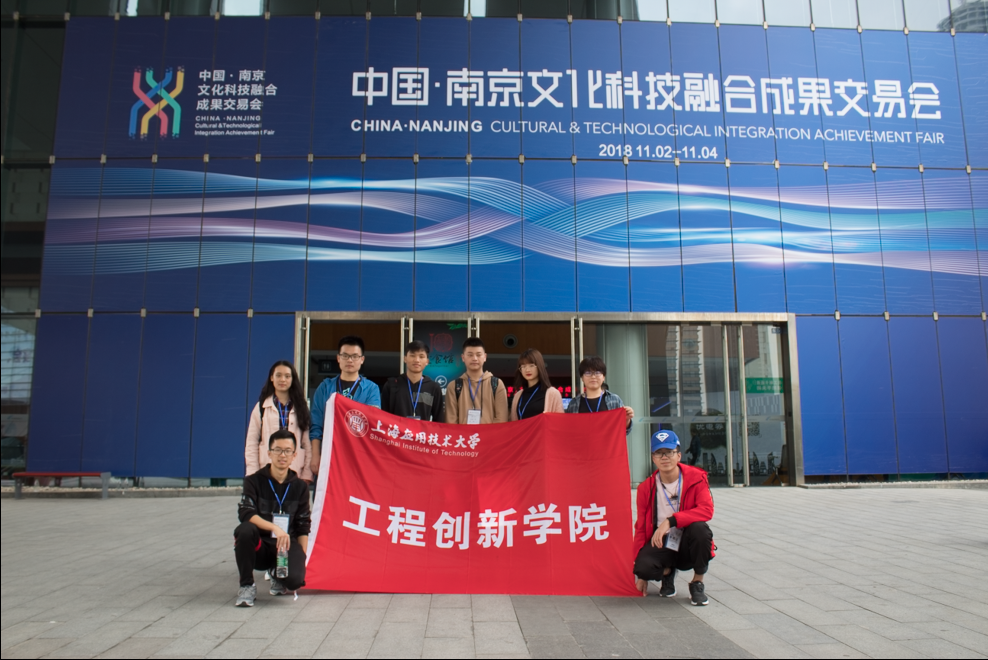 2018年11月,上海应用技术大学工程创新学院机器人爱好者社团成员们参加了在南京国际博览中心举办的文化科技融合成果交易会(简称“南京融交会”),融交会以“新时代、新业态、新生活”为主题,为期三天,共划分三个展馆,4号馆承载“国家文化科技融合示范基地成果展”、“全国文化科技融合企业-智能制造与文化融合”和“全国文化科技融合企业-传统文化的科技再生”;5号馆承载“全国文化科技融合企业-数字创意与美好生活”;6号馆承载“江苏文化科技融合展”和“南京文化科技融合展”。展馆聚合了来自全国12个省直辖市、8个国家级文化和科技融合示范基地的领军企业参展,如“万物有灵”数字文博特展——是清华大学美术学院的主题特展,借助现代科技的力量,让同学们领略到了传统文化的科技再生。现场还展示了“未来沉浸式餐厅”“未来美术馆”“未来运动馆”“未来互动体验馆”和“全息空间”等五个技术应用场景,深受同学们喜爱。